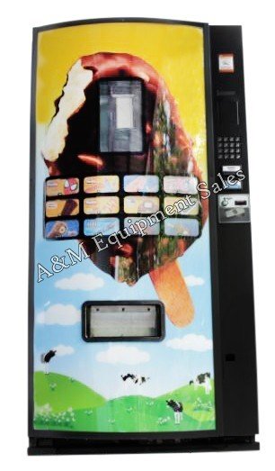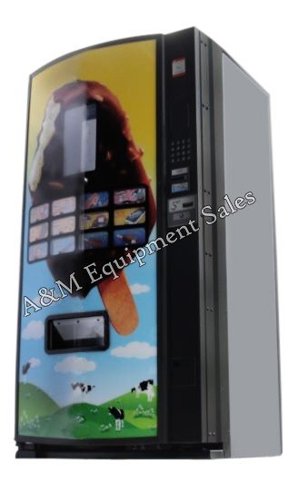 Refurbished Fastcorp Z400 Ice Cream vending machine featuring a quick and easy loading bin system that accommodates first in first out delivery. Conveniently sell a variety of delicious ice cream cones, ice cream sandwiches, push-ups, and other frozen food items. With durable heavy steel construction, the Fastcorp Z400 Ice Cream machine is designed with a hi-tech robotic vacuum delivery system. Best-selling items placed at the center of the freezer shorten robot travel distance and reduce vend cycle time. Modern and convenient cashless payment upgrade options available.